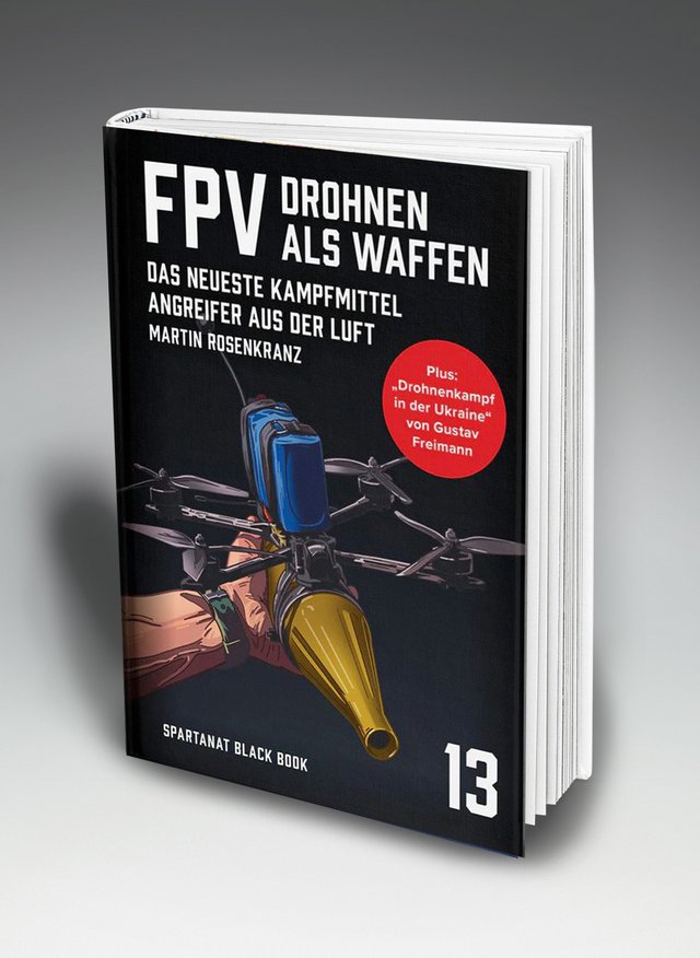 Martin Rosenkranz widmet sich im mittlerweile 13. Spartanat Black Book diesen modernen Kampfmitteln und ergänzt damit die bereits zu dem Thema erschienenen Bände 3 (Die taktische Drohne) und 10 (Drohnenabwerh). Dabei beschreibt er einerseits ihre Leistungsparameter und die technischen Hintergründe, stellt deren Stärken und Schwächen vor, gibt andererseits aber auch einen Einblick in jenes Hintergrundwissen, das nötig ist, um FPV-Drohnen zu verstehen. Darüber hinaus wagt er auch eine Einschätzung der zukünftigen Verwendung dieser Objekte, die nicht nur in der Luft zum Einsatz kommen.