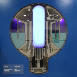 Das Hauptelement des Kernkraftwerkes ist der Druckbehälter mit dem Reaktor, in dem die kontrollierte Kernspaltung stattfinden sollte. In 484 Brennelementen, in denen sich wiederum je 63, mit Uraniumoxid gefüllte Brennstäbe befinden, sollte die Kernspaltung ablaufen. Damit diese kontrolliert ablaufen kann, gibt es die Steuerstäbe. Diese haben die Form eines Kreuzes und verbinden jeweils vier Brennelemente. Das Material der Steuerungselemente (eine Borverbindung) unterbindet die Kernspaltung und kann diese somit kontrollieren und zum Stillstand bringen. Somit kann die Kernspaltung nur in jenem Teil der Brennelemente ablaufen, die nicht von Steuerstäben bedeckt sind. Die Steuerstäbe ermöglichen auch die Schnellabschaltung des Reaktors innerhalb von nur 2,2 Sekunden, bei der die Steuerstäbe zwischen die Brennelemente „schießen“ und die Kernreaktion sofort beenden.