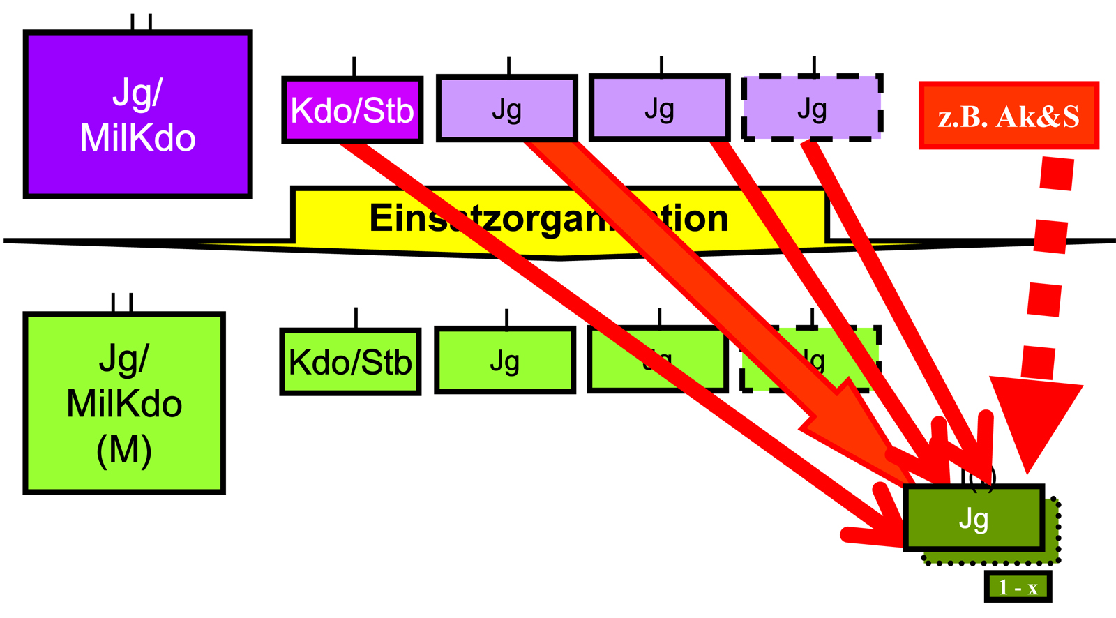 - Endgültige Befüllung der jeweils verfügten Mobilmachungsorganisation der Jägerbataillone der Militärkommanden.