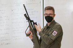 „Sir! My task is to brief you on disassembling the assault rifle into its main groups.” Der erste Unteroffizier beginnt mit der Einweisung. „This assault rifle, the AUG 77, is the tool of an Austrian soldier. It is pretty easy to field strip and you don´t need any tools to do that.” Damit ist die „introduction“ beendet und er beginnt damit, die Waffe auseinanderzunehmen, um sie danach wieder zusammenzusetzen – das ist bereits der „main part“ seiner Präsentation. Alle Handgriffe, die er ausführt und alle Teile, die er dabei betätigt, beschreibt er mit einfachen Worten und benennt sie mit ihren englischen Bezeichnungen. Voraussetzung dafür sind die richtigen Vokabeln, die die Teilnehmer im Selbststudium anhand ihrer Unterlagen bereits gelernt haben. „You can see that this assault rifle is not only reliable, but also easy to handle and to maintain. From my point of view, it is a cool weapon. Sir! This concludes my presentation. Do you have any questions?” Mit dieser „conclusion“ beendet der Unteroffizier seine Kurzpräsentation.